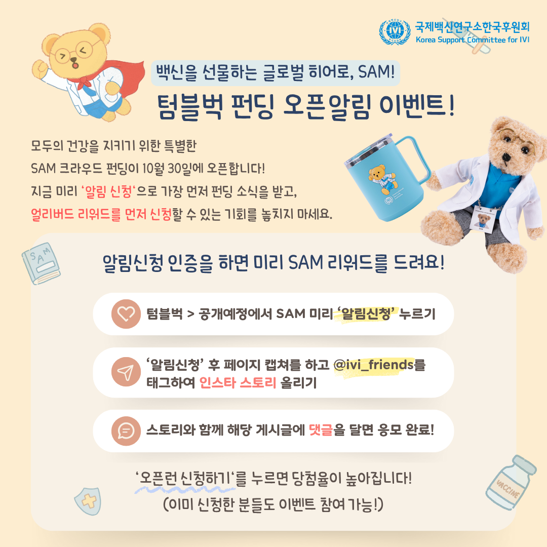 모두의 건강을 지키기 위해 SAM 텀블벅 크라우드 펀딩이