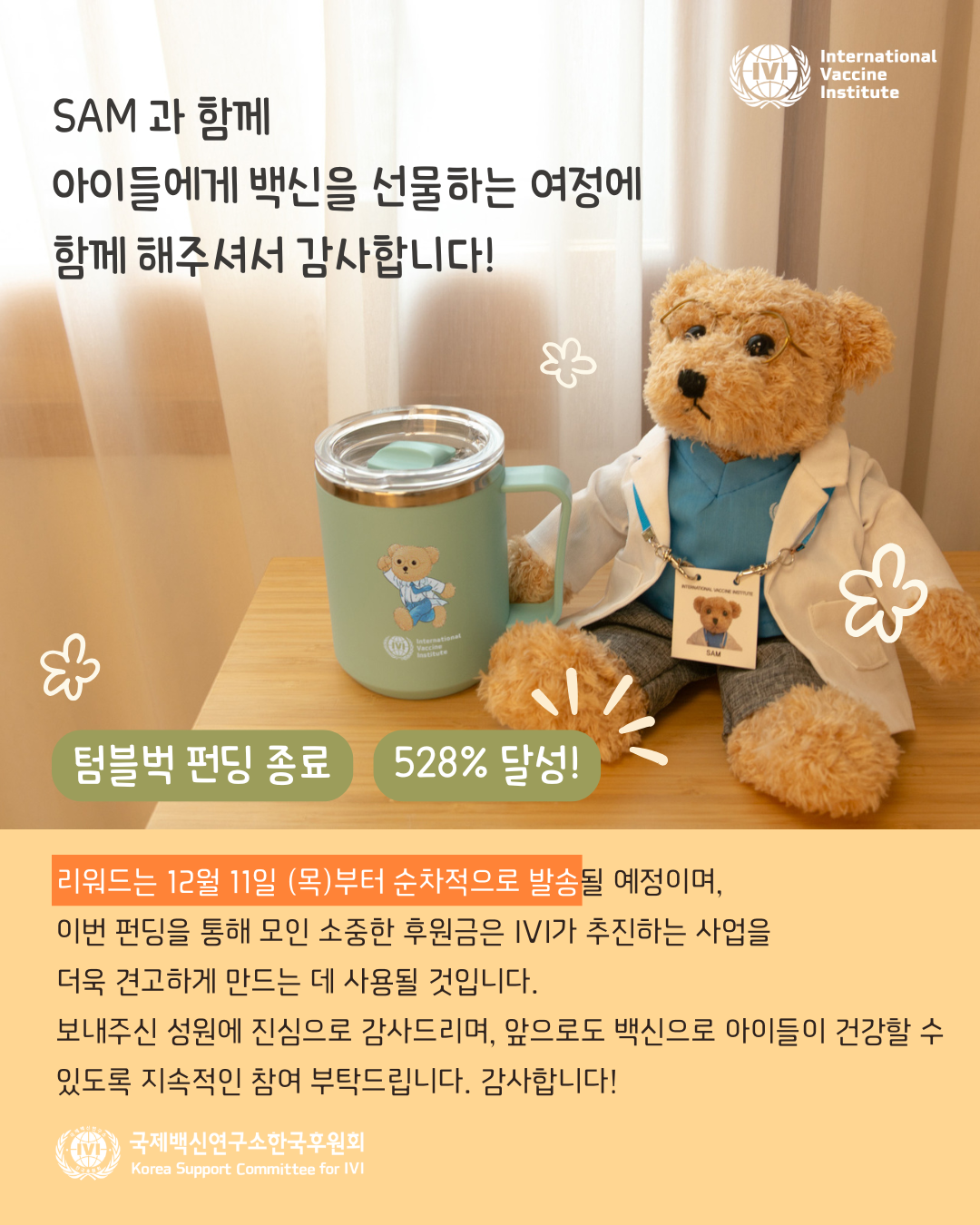 보내주신 성원 덕분에 캠페인 목표를 달성하고,