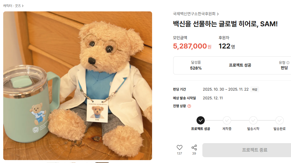 🐻샘 텀블벅 크라우드 펀딩 성공 종료 및 선물 배송 안내 (12/11~)🐻